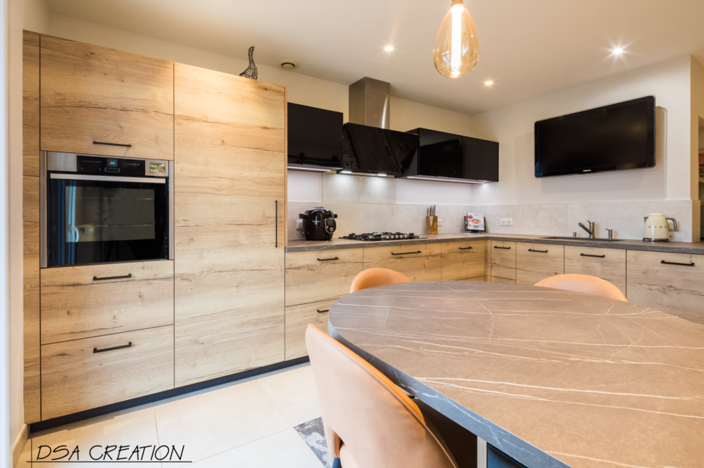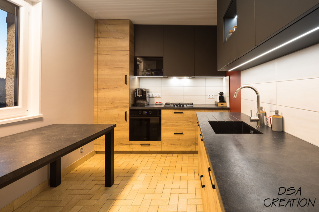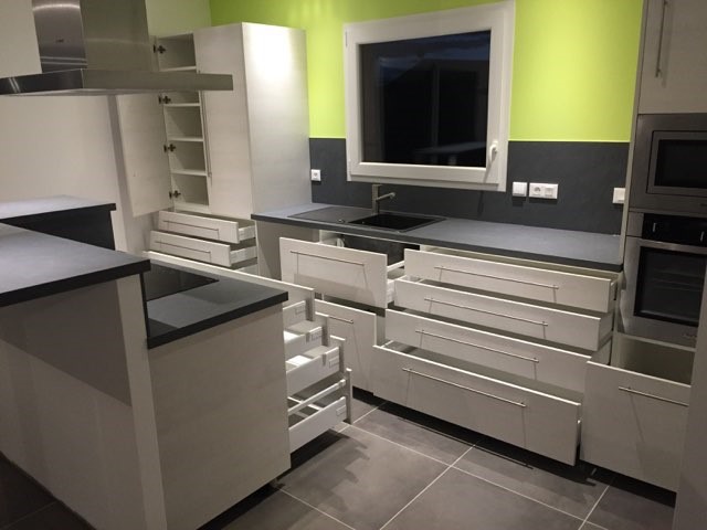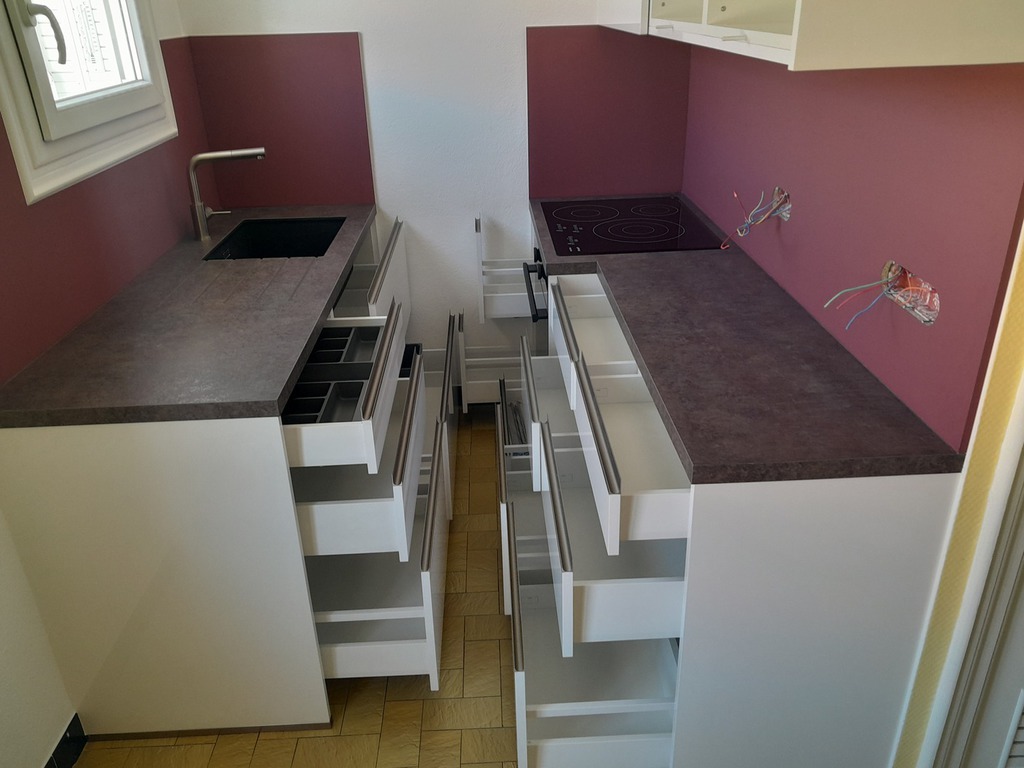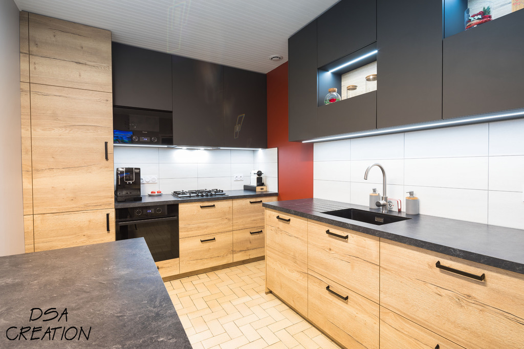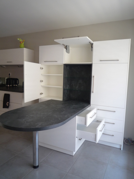 Nos cuisines sont créées et fabriquées entièrement sur mesure, elles sont adaptées à votre intérieur et à vos envies, avec un gain de place maximum.