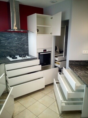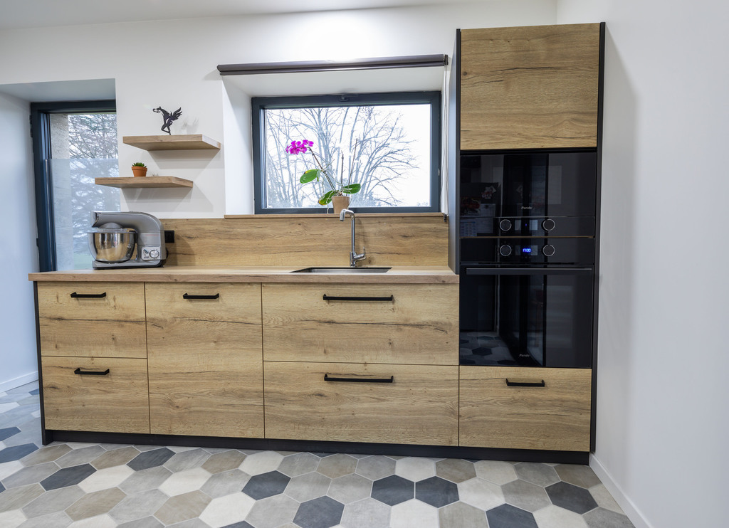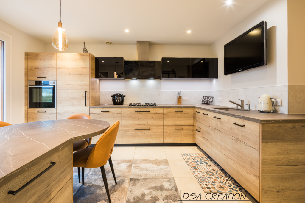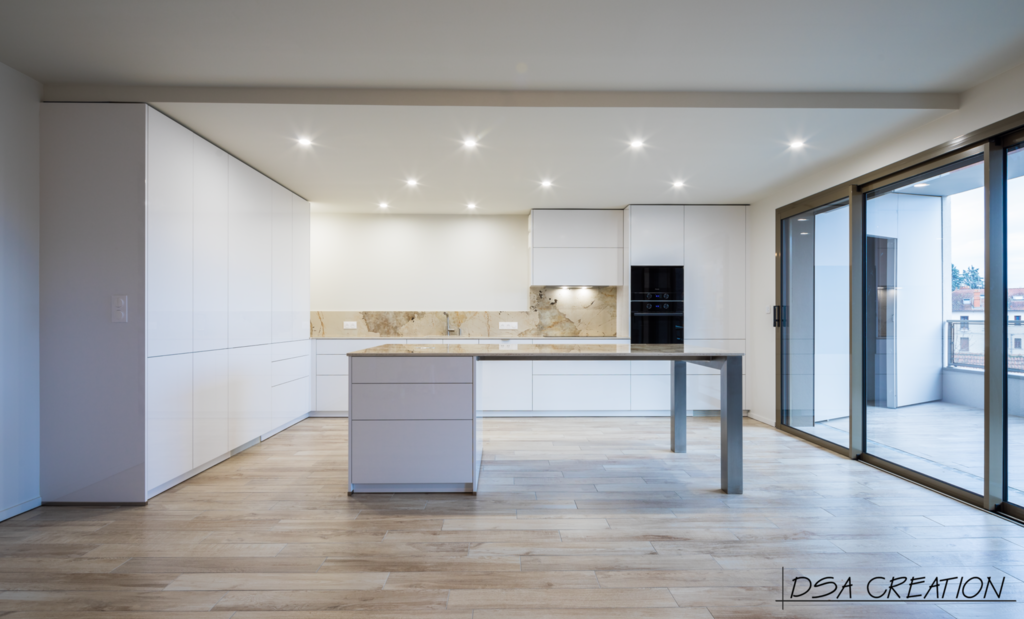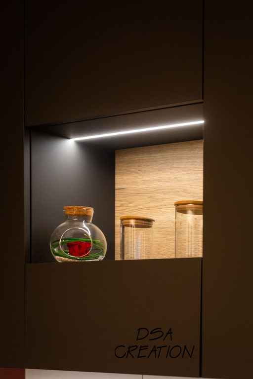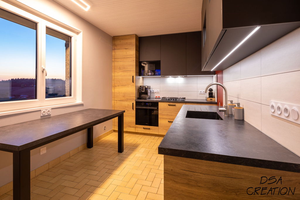 Nos cuisines sont créées et fabriquées entièrement sur mesure, elles sont adaptées à votre intérieur et à vos envies, avec un gain de place maximum.